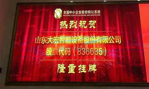 山東大宏智能設備股份有限公司正式在新三版掛牌,股票簡稱:大宏智能,股票代碼:836635。...