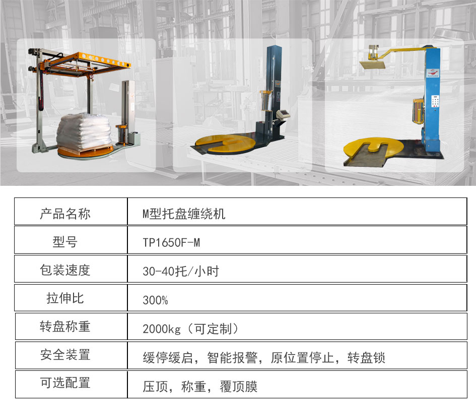 大宏佳森M托盤纏繞機(jī)TP1650F-M,采用M型圓盤,