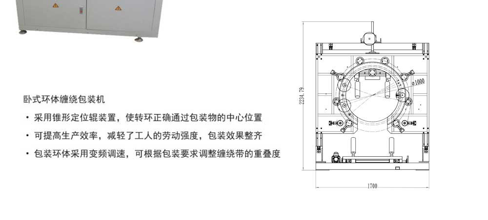 銅圈及各種環(huán)狀物品進(jìn)行個(gè)體包裝,其優(yōu)點(diǎn)在于完全替代了手工纏繞包裝,包裝速度快,操作方便,大大提高了生產(chǎn)效率,減輕了工人的勞動(dòng)強(qiáng)度。包裝效果整齊,美觀,拉緊力強(qiáng)。起到防塵,防潮,保護(hù)設(shè)備表面的作用。便于運(yùn)輸和儲(chǔ)存,提高設(shè)備外觀質(zhì)量。